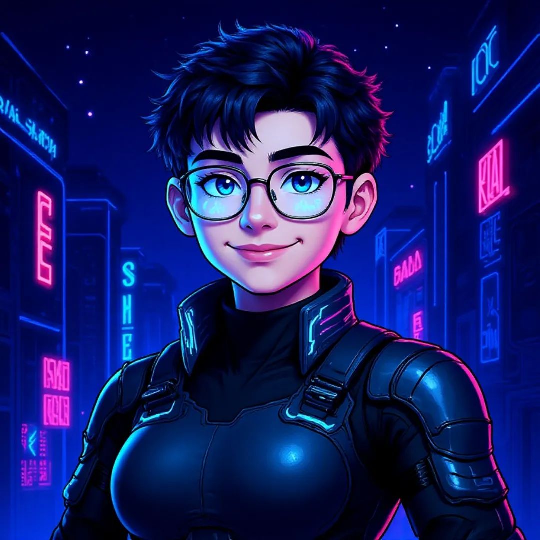 这里我上传一张卡通头像进行测试,风格选择赛博朋克(数十种风格可选),全程没有加任何的提示词,全凭AI自由发挥。
