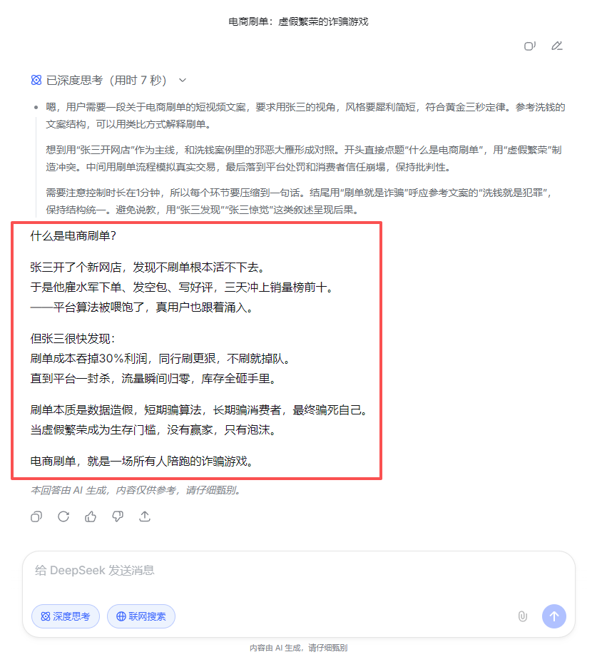 浩哥把所有的对话工具都测试了一遍,相同的提示词框架下,DeepSeek在网络语言风格方面表现力更胜一筹,效果也更好。