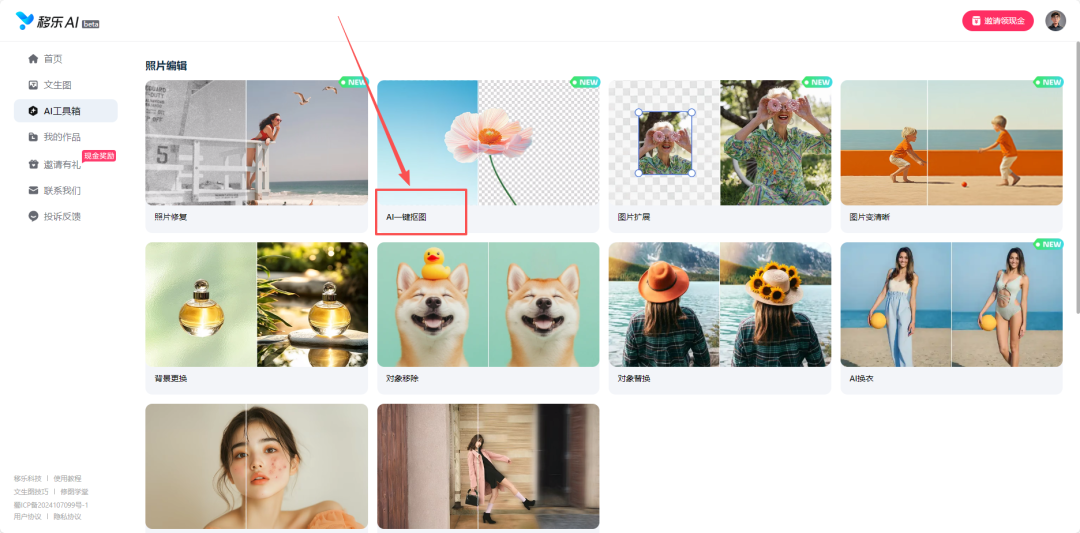 将简笔画,按顺序下载保存,然后可以用AI图片编辑工具(比如:移乐AI)将保存下来的简笔画改成透明背景。