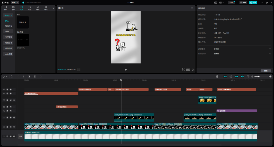 配音解决之后,将图片素材和配音导入剪映,剪辑成片即可。