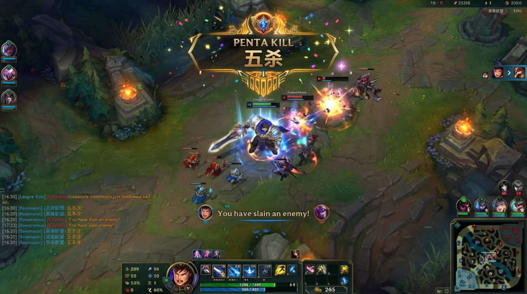 提示词:一比一复刻游戏中的场景,生成一张英雄联盟游戏中“Penta Kill”的截图。