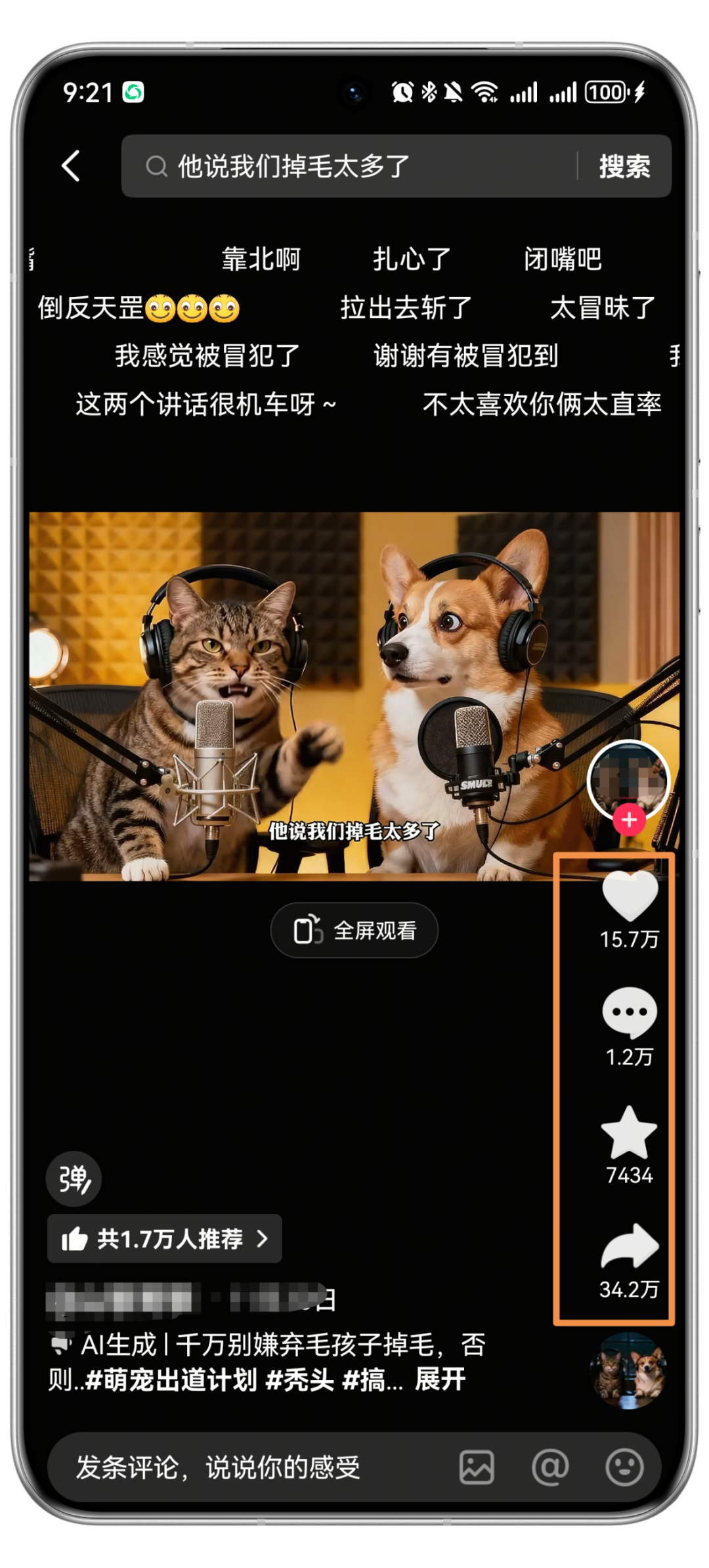 在短视频平台上,搜索“动物吐槽人类”“动物吐槽主人”相关的话题,优先选取点赞最多的文案,下载保存就可。