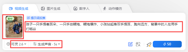 第二步、可灵2.6音画同步生成视频