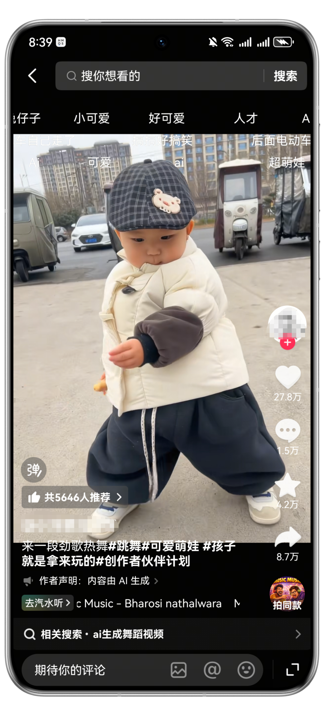 最近萌娃萌宠跳舞的AI视频又开始疯狂冒头,从抖音到视频号、小红书...流量简直好的离谱,几乎条条作品点赞10万+
