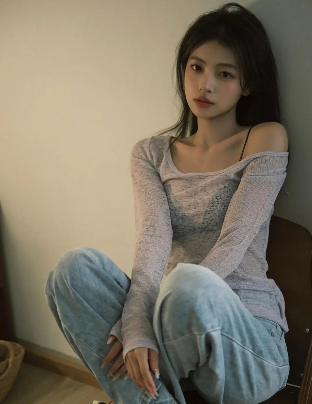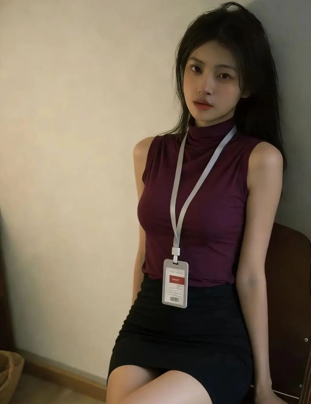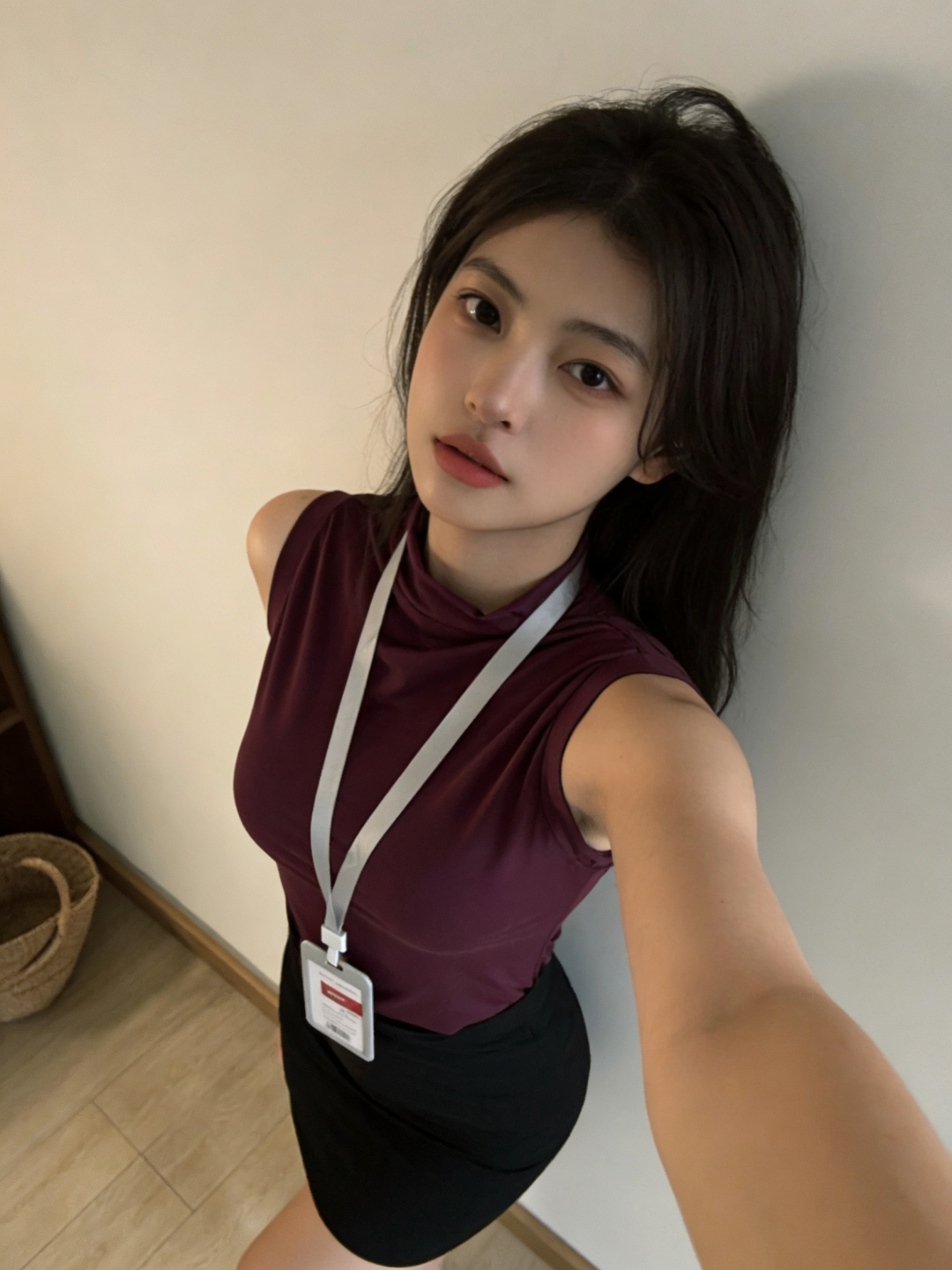 人物面部特征参考第一张图,图一的人物穿上图二的衣服,在房间自拍,动作跟随氛围搭配,御姐风,帮我生成6组不同角度不同姿势的自拍照。