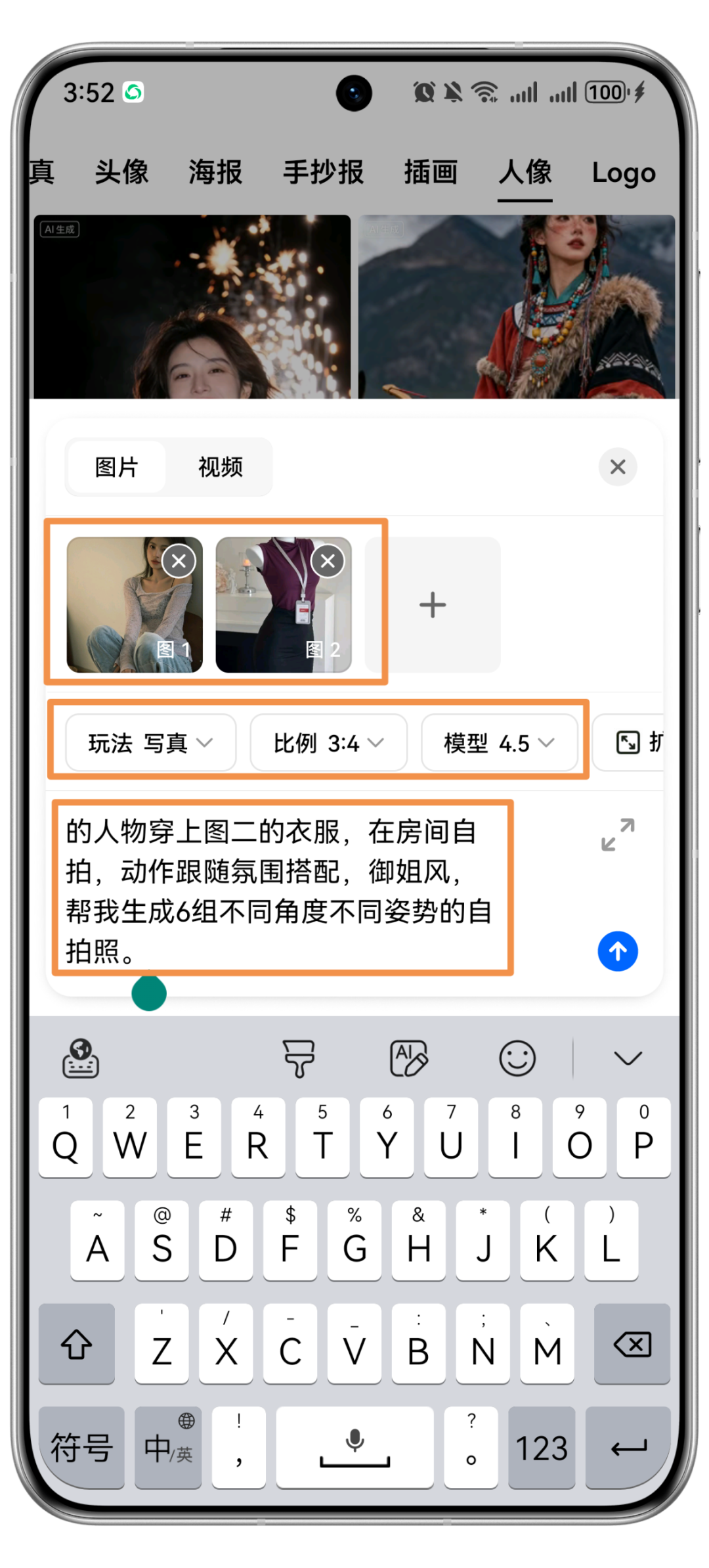 -确定写真风格 比例3:4 模型4.5