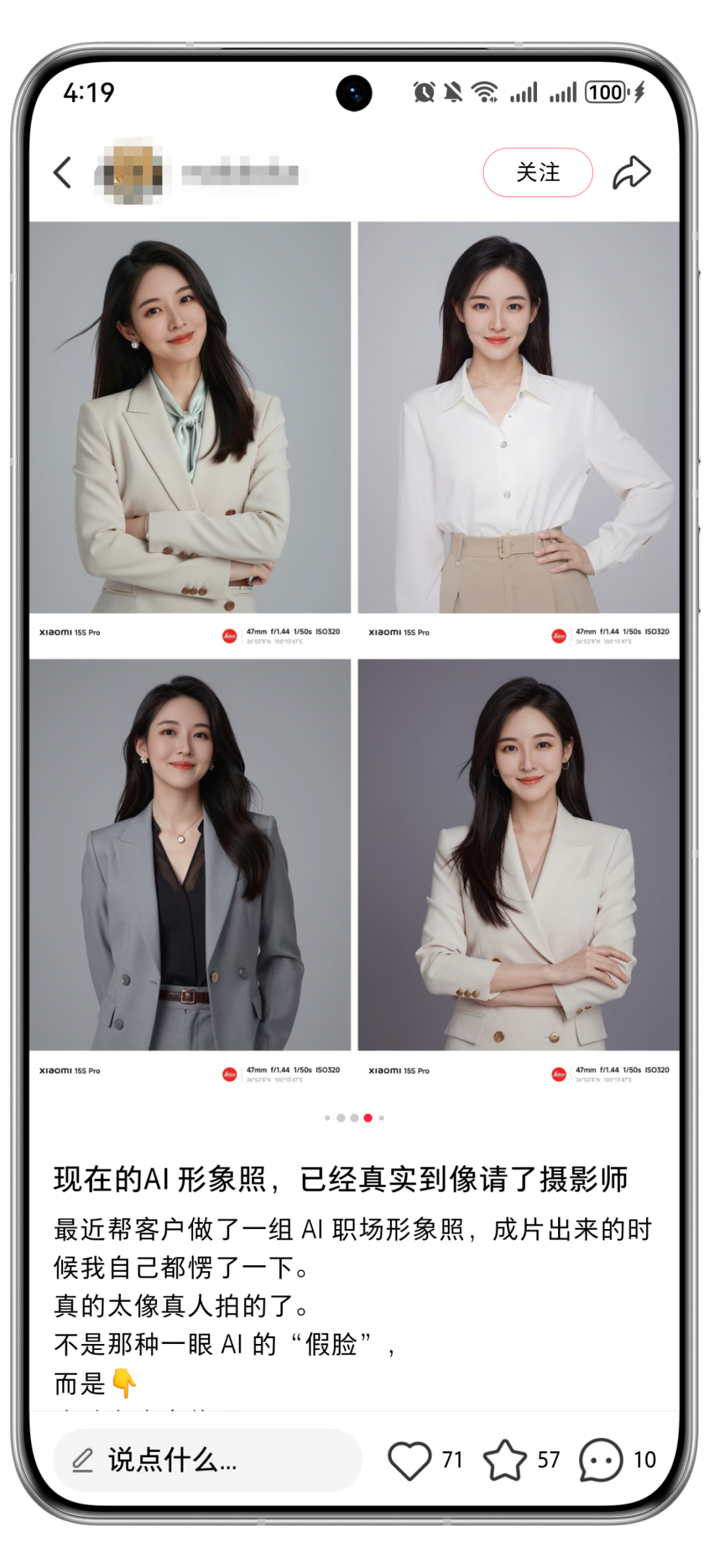 在自己的社交媒体(以小红书为主)发布用AI制作的各种风格写真照+文案(比如:现在的AI形象照,已经真实到像请了摄影师......)